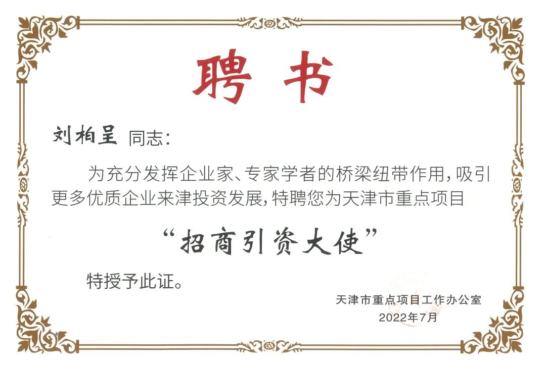 新闻|开元体育物联董事长刘柏呈受邀担任天津市重点项目工作办公室“招商引资大使”