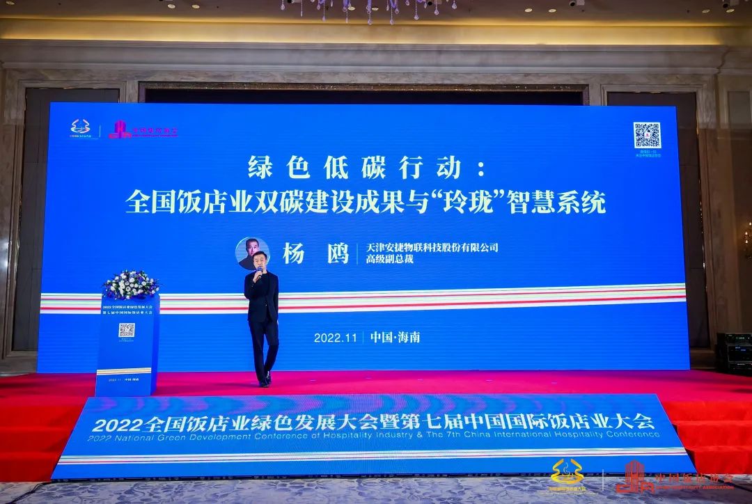 会上,天津开元体育物联科技股份有限公司高级副总裁杨鸥,正式发布了《绿色低碳行动:全国饭店业双碳建设成果与“玲珑”智慧系统》。