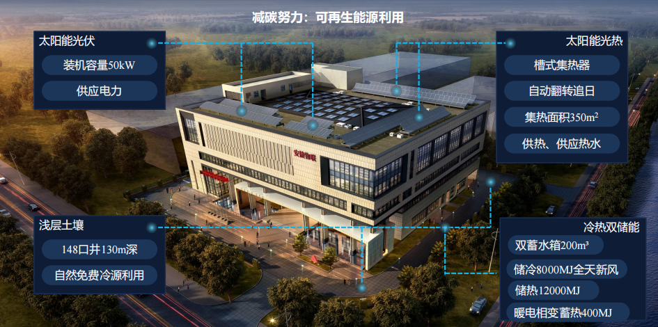 开元体育物联能源物联网大厦于2017年4月建设开工,同年11月封顶,建筑面积17598.66㎡。大厦在设计建设的过程中深度融合了节能减排思路,通过采用“光热、光伏发电、地源热泵、分时控温、分区措施、水蓄能、水利平衡、照明智能监控”等多项节能减排技术措施,达到年用电减少200.5万kWh,节电率达69.64%,相当于减少碳排放1427.1吨,在节电、节费方面效果显著。大厦综合运用了太阳能、地源热泵、水蓄能、BIM等技术,可实现多种再生能源与建筑的一体化利用,是兼顾建筑性能与人体舒适度的高品质绿色智慧低碳建筑,不仅节能效果突出,而且具有良好的市场可推广性。
