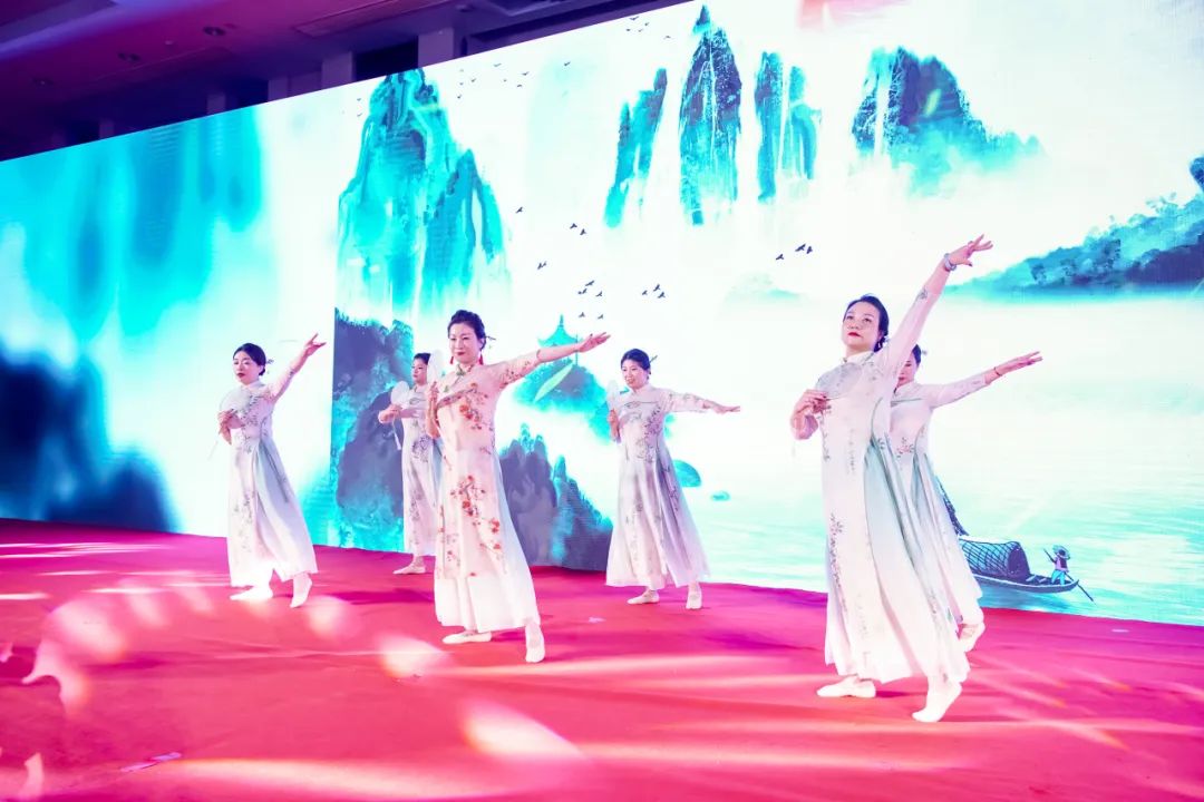 开元体育物联高级副总裁赵若汐、丰美丽,人力资源部、综合办经理庞嘉莹,技术经济部王亚琼,人力资源部刘莹以及合约部王园共同带来的古典舞《声声慢》,带领观众领略了江南水乡的别样韵味,舞姿婀娜,韵味无穷。