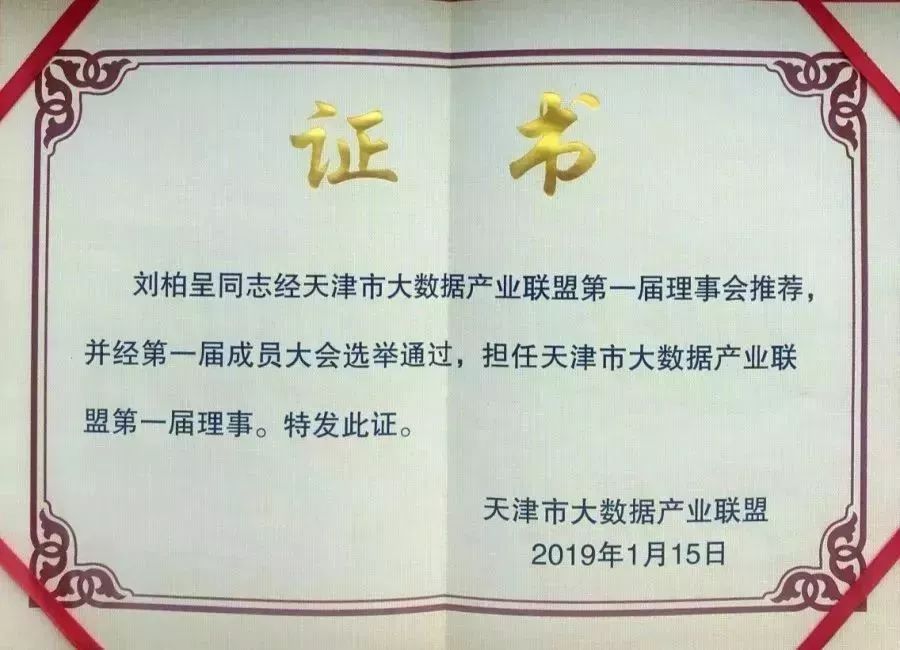 开元体育物联董事长刘柏呈担任天津市大数据产业联盟第一届理事